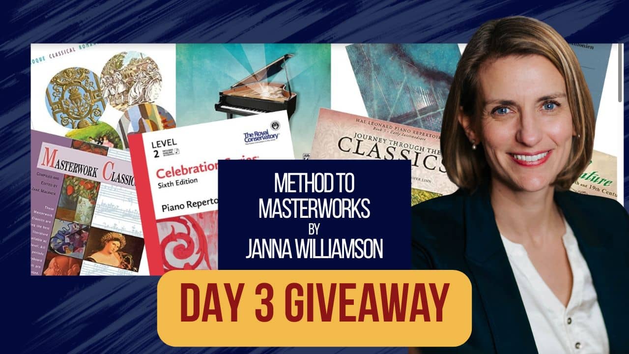 Fortunately, Janna has created an invaluable resource linking method repertoire to corresponding anthologies. It's called Method to Masterworks and one of YOU will win a FREE copy today.